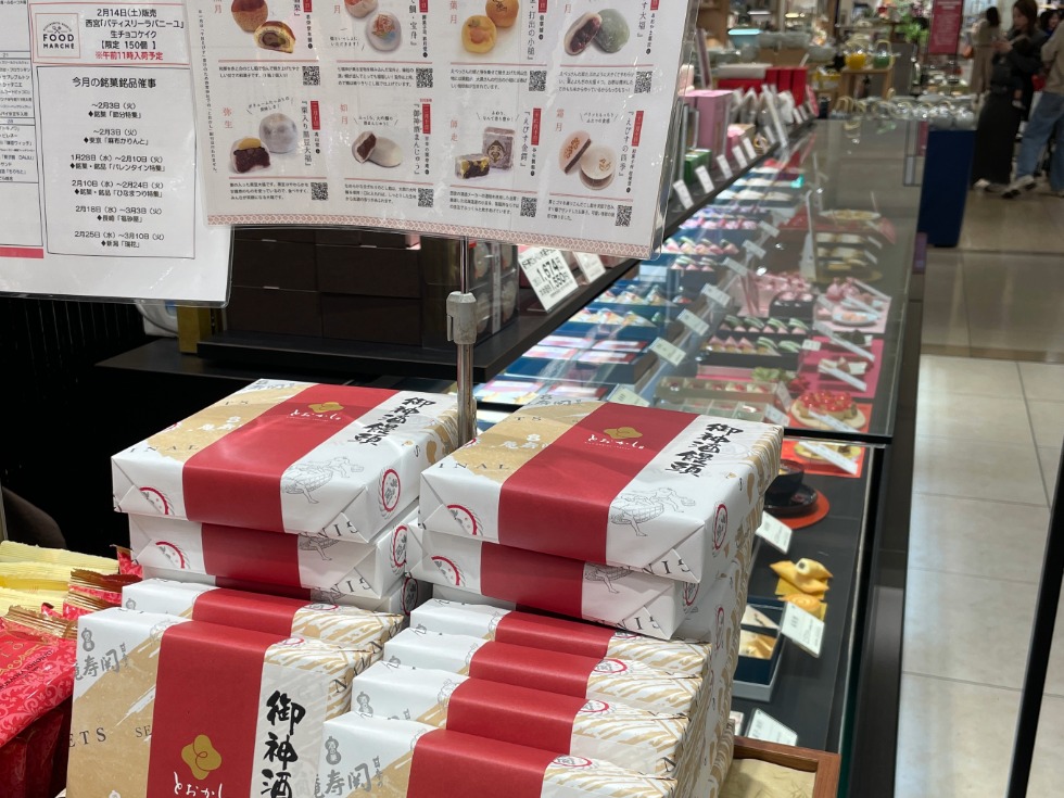 阪急西宮ガーデンズの「西宮阪急」1階食料品売場「銘菓銘品日本の味」にて、毎月十日に、月替わりのとおかしを販売しています。